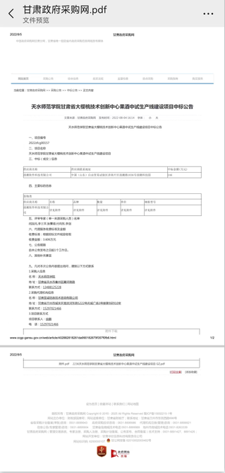祝賀我公司:天水師范學(xué)院甘肅省大櫻桃技術(shù)創(chuàng)新中心果酒中試生產(chǎn)線建設(shè)項目